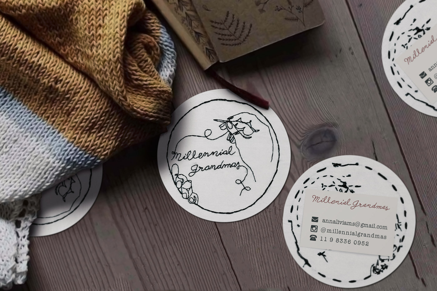 Logo design for Millennial Grandmas, a Brazilian shop selling handmade embroideries. The logo was designed by hand and then embroidered by the client, before being finalized for digital purposes.